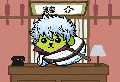 Gintoki, Kagura, and Shipachi have turned into "weird living creatures," parodying the short kids' anime Mameshiba that features sword bean-dog hybrid creatures.